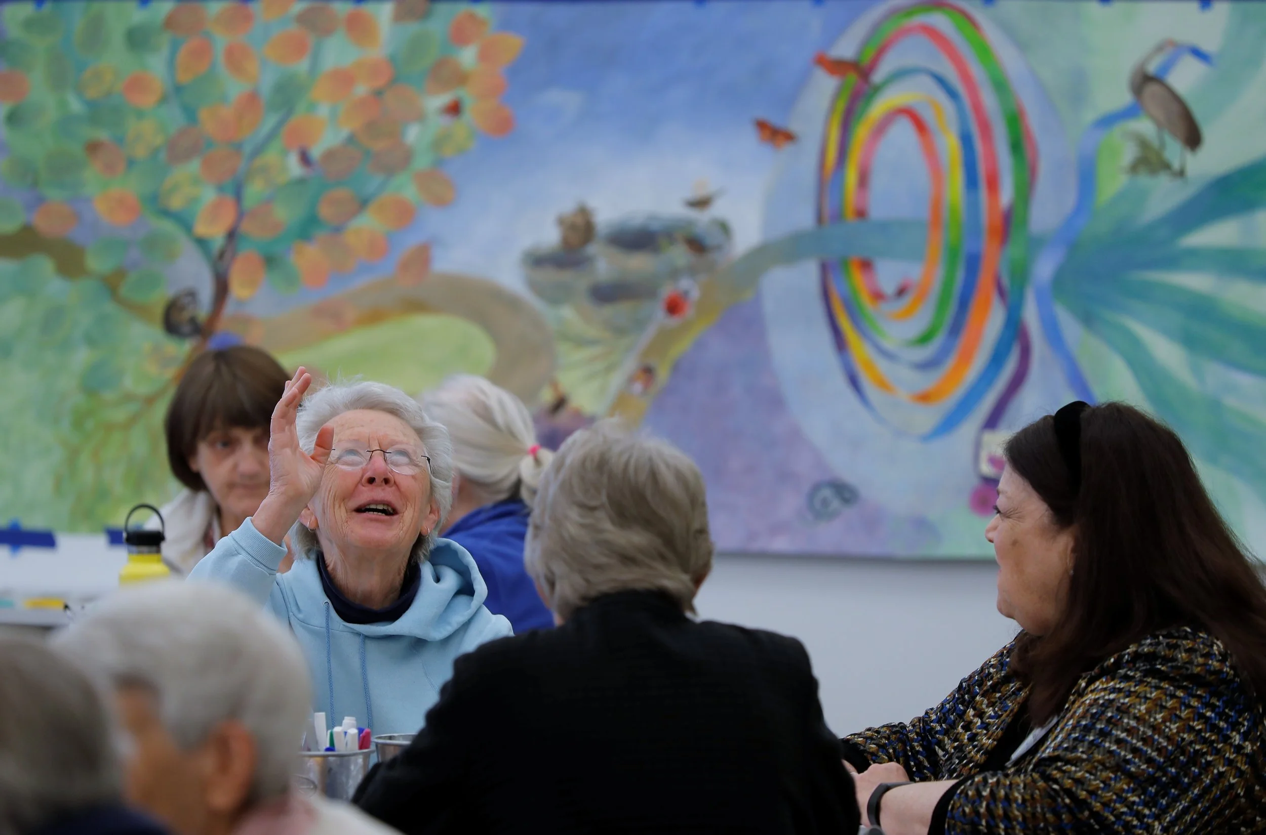 A community mural by Amy Walsh and the whole Focus Communities Gathering community.